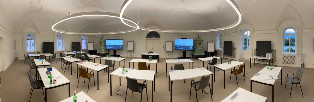 Die Ruhe und Gelassenheit, die von der idyllischen Lage des Schlosses ausgehen, bieten einen exzellenten Rahmen für Denkarbeit und anspruchsvolle Wissensvermittlung. Mitten in der Stadt liegt es wie eine Oase in der Hektik des Alltags und schafft Raum für Visionen als auch für das Entwickeln von praktischen Lösungen.