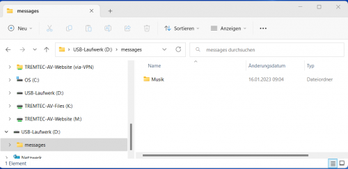 - Ordner messages + Unterordner z.B. Musik erstellen