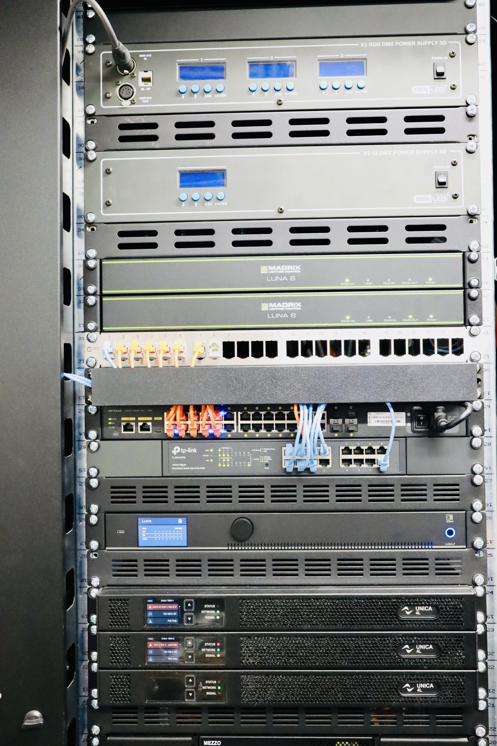 Auf nur 3 Höheneinheiten stehen somit 48.000 Watt Musikleistung zur Verfügung.