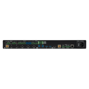 Unsere Präsentationsmatrix EL-2600V wurde genau für diese Anforderungen entwickelt. Sie verfügt über zwei HDMI-Eingänge, einen DisplayPort-Eingang und einen VGA-Eingang. Über die HDMI- und DisplayPort-Eingänge lassen sich 4K@60Hz-4:4:4-Auflösungen ausgeben, ebenso wie bidirektionales Ethernet, RS-232, USB und IR.