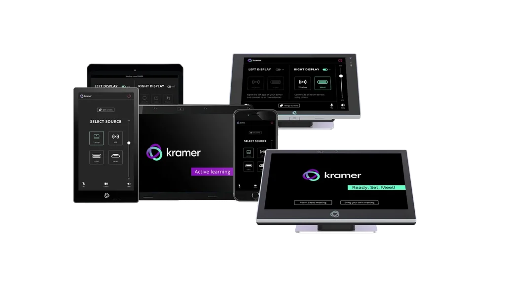 Cloud–basierte Steuer–PlattformKramer Control ist eine unternehmensweite, revolutionäre, benutzerfreundliche, Cloud−basierte Steuerungs− und Managementlösung, die IT− und AV−Managern eine einfache Möglichkeit zur Steuerung, Überwachung und Unterstützung von AV−Systemen, Infrastrukturen und beliebigen Geräten von Drittanbietern bietet. Durch die Nutzung bestehender IP−Netzwerk−Infrastrukturen und aufgrund ihrer verteilten Architektur ist Kramer Control hoch skalierbar und hat keine einzelne Schwachstelle. Für eine verbesserte Skalierbarkeit konzipiert, befreit die Cloud−basierte Architektur von Kramer Control von der Starrheit der Programmierung. Richten Sie Ihr Steuersystem ein, ändern Sie es und erweitern Sie es von überall, ohne dass Sie körperlich vor Ort sein müssen. Das Entwerfen eines Systems war nie einfacher als mit dem programmierfreien, intuitiven Drag & Drop Builder von Kramer Control. Installieren, konfigurieren und modifizieren Sie Ihr Steuerungssystem ohne Vorkenntnisse in der Programmierung. Mit der Online−Schulung und der Wissensdatenbank von Kramer Control, die auf der Kramer−Website verfügbar sind, können Sie sich schnell zurechtfinden.