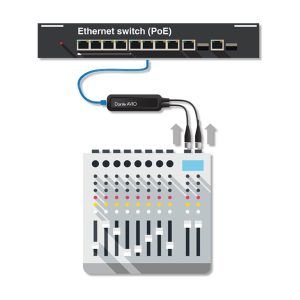 Beachten Sie, dass Dante AVIO-Adapter einen PoE-Switch (Power over Ethernet) oder einen PoE-Injektor gemäß 802.3af benötigen. Besuchen Sie http://audinate.com/AVIO für weitere Produktinformationen.