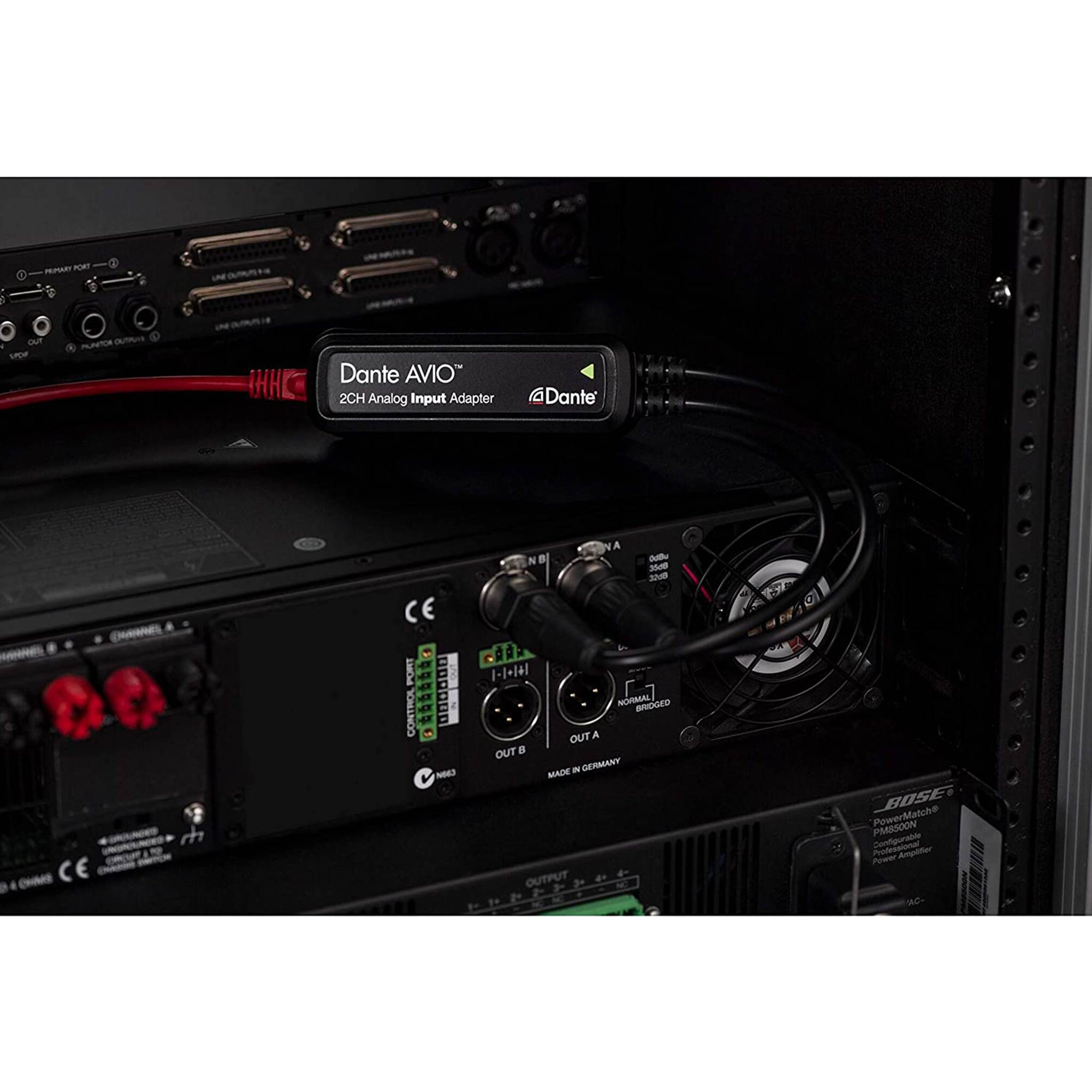 Mit den analogen Dante AVIO-Ausgängen können Sie analoge Line-Level-Produkte, die Sie bereits besitzen, von jedem mit Dante verbundenen System aus betreiben. Bringen Sie Ihre Verstärker, Aktivlautsprecher und mehr mit Dante AVIO in die Welt der Audio-Vernetzung. Unterstützt zwei analoge Audioausgänge.