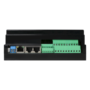 Die Vorderseite des schwarzen ABS-Gehäuses gibt einen kurzen Überblick über die Anschlussmöglichkeiten, während die Rückseite mit einem Federmechanismus ausgestattet ist, der eine einfache Montage auf weit verbreiteten Standard-DIN-Schienen ermöglicht. Auf diese Weise kann es problemlos in jeden Schaltschrank integriert werden.
