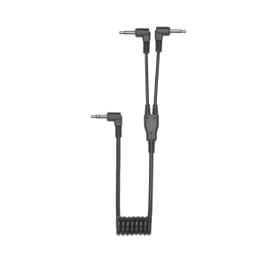 Im Lieferumfang ist ein 280 mm (11,0″) Doppelmono Kabel AT8351 enthalten. Auf dem Stereo-Spiralkabel (zwei 3,5-mm-Mono-Ministecker auf 3,5-mm-Stereo-Ministecker) können Sie einen Empfänger für die Audioaufnahme des linken Kanals und den anderen für die Audioaufnahme des rechten Kanals verwenden und beide in den Audioeingang der Kamera einspeisen.