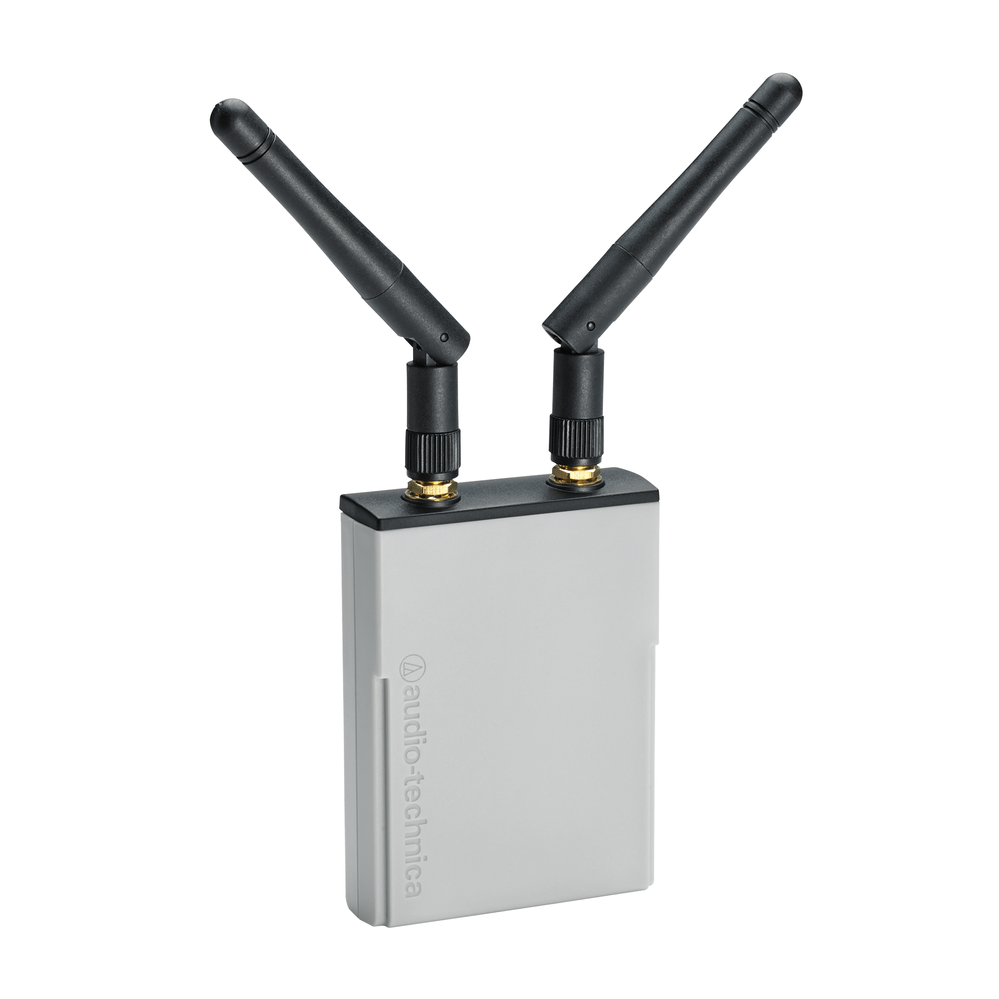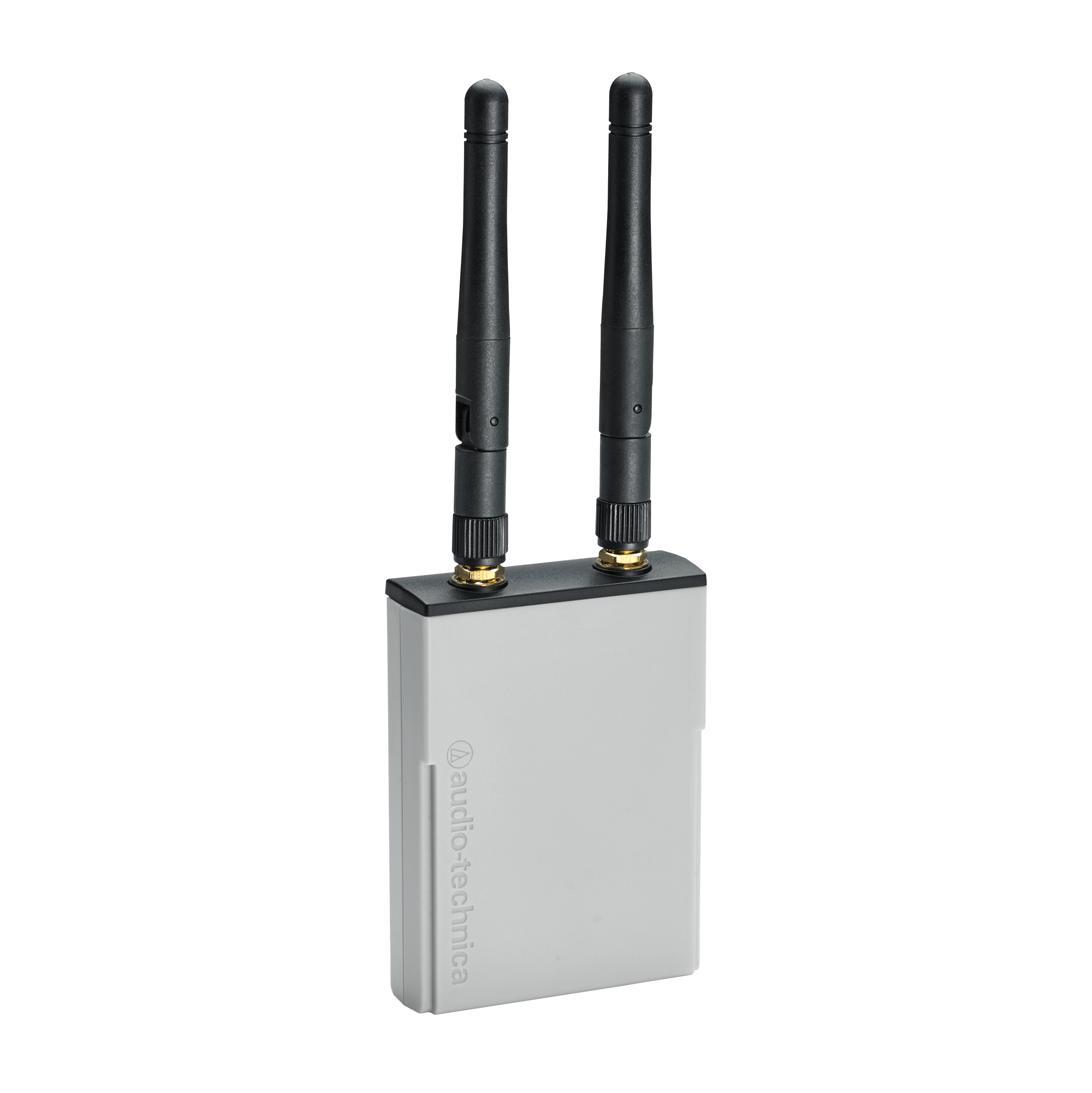 Die Empfängereinheit ATW-RU13 verfügt über zwei abnehmbare Antennen, die über SMA-Anschlüsse auf die Vorderseite des Geräts geschraubt werden. Die Rückseite des Geräts ist mit einer ¼“-20 Gewindebuchse ausgestattet, um die Empfängereinheit an einem Stativ oder einem anderen Gerät mit einer ¼“ -Schraube zu befestigen. Ein RJ45-Anschluss, ebenfalls auf der Rückseite des Geräts, ermöglicht es, eine entfernt montierte Empfangseinheit mit einem UTP-Kabel an das Gehäuse anzuschließen. Eine LED-Statusanzeige zwischen der Anschlussbuchse und dem RJ45-Anschluss blinkt langsam, wenn die Empfängereinheit nicht mit einem Sender gekoppelt ist, blinkt während des Kopplungsvorgangs schnell und leuchtet grün, sobald die Empfängereinheit mit einem Sender gekoppelt ist. Für jede Empfängereinheit wird ein AT8690 RU13-Halter mitgeliefert, der eine bequeme Möglichkeit bietet, das Gerät zu montieren.