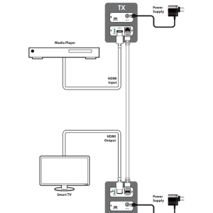 Set besteht aus Sendermodul und Empfängermodul. Wandelt ein HDMI2.0 (3840×2160@60Hz/ 4096×2160@60Hz) Signal zur Übertragung über ein CAT6/7 Kabel und beim Empfang zurück in das ursprüngliche Signal.