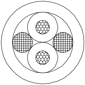 Das Kabel besteht aus einzelnen isolierten Leitern mit einem Querschnitt von 2 x 0,75 mm² (18 AWG), die aus verdrillten Kupfermantel-Aluminiumdrähten (CCA) bestehen. Die Verseilung hält das Kabel flexibel und einfach zu handhaben, während die kupferplattierte Aluminiumkonstruktion zu einer elektrischen Leistung zwischen Kupfer- und Aluminiumkabeln führt. Es verbindet die Vorteile von zwei Seiten, wie Lötbarkeit, geringeres Gewicht und geringere Materialkosten als blankes Kupfer mit höherer Leitfähigkeit und höherer Festigkeit als reines Aluminium. Die Kabelzusammensetzung besteht aus 75% Aluminium mit 25% Kupfer.