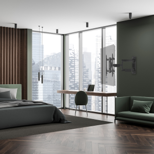 Die Halterung verfügt über eine einfach zu neigende Schnittstelle und drei Drehpunkte für eine schnelle und reibungslose Neupositionierung des Bildschirms – egal ob flach an der Wand gefaltet oder bei maximaler Ausdehnung. Mit Abdeckplatten und Kabelmanagement für eine aufgeräumte Montagelösung ist der BT5226 ideal für gewerbliche und private Installationen.