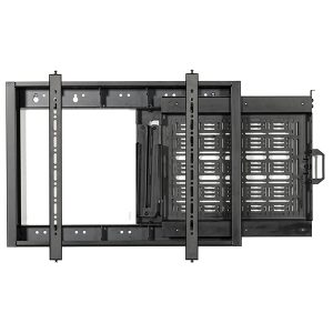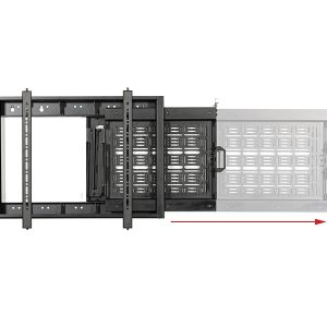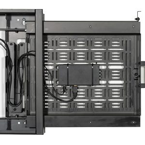 Der BT7883 ist eine Bildschirmmontagelösung mit einer integrierten ausziehbaren Ablage zur Aufbewahrung von AV-Geräten hinter dem Bildschirm. Mit einer schnell lösbaren Geräteschnittstellenplatte, die von der Halterung getrennt werden kann, können AV-Geräte einfach hinzugefügt oder aus der Installation entfernt werden, ohne dass zuerst der Bildschirm entfernt werden muss. Der Mechanismus der Ablage lässt sich werkzeuglos bedienen, was eine einfache und schnelle Bedienung ermöglicht. Es besteht die Möglichkeit, ein Vorhängeschloss (nicht im Lieferumfang enthalten) anzubringen, um unbefugten Zugriff auf die Ausrüstung zu verhindern. Um sicherzustellen, dass sich die Kabel beim Öffnen und Schließen des Fachs nicht verheddern oder einklemmen, bewegt sich eine integrierte Kabelführungsschiene im Einklang mit dem Fach. Der BT7883 eignet sich sowohl für die Wandmontage als auch für die System 2-Stangen und System X/Mode-AL-Säulen von B-Tech.