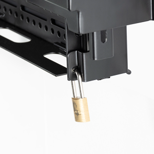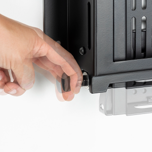 Der BT7885 ist eine Bildschirmmontagelösung mit einer integrierten ausziehbaren Ablage zur Aufbewahrung von AV-Geräten hinter dem Bildschirm. Mit einer schnell lösbaren Geräteschnittstellenplatte, die von der Halterung getrennt werden kann, können AV-Geräte einfach hinzugefügt oder aus der Installation entfernt werden, ohne dass zuerst der Bildschirm entfernt werden muss. Der Mechanismus der Ablage lässt sich werkzeuglos bedienen, was eine einfache und schnelle Bedienung ermöglicht. Es besteht die Möglichkeit, ein Vorhängeschloss (nicht im Lieferumfang enthalten) anzubringen, um unbefugten Zugriff auf die Ausrüstung zu verhindern. Um sicherzustellen, dass sich die Kabel beim Öffnen und Schließen des Fachs nicht verheddern oder einklemmen, bewegt sich eine integrierte Kabelführungsschiene im Einklang mit dem Fach. Der BT7885 eignet sich sowohl für die Wandmontage als auch für die System 2-Stangen und System X/Mode-AL-Säulen von B-Tech.
