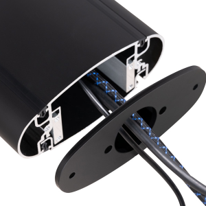 Das integrierte Kabelmanagement ermöglicht die Führung von Kabeln durch die Mitte der Bodenplatte und in die vertikale Säule unter dem Boden