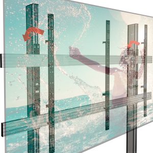 Die mobile Montagelösung BT83LAE015-M wurde speziell für den LG LAEC015 136″ All-in-One LED-Bildschirm der Essential Series entwickelt. Dank ihres eleganten und zugleich schlichten Designs lässt sie sich schnell und einfach in weniger als einer Stunde installieren. Der All-in-One-Bildschirm besteht aus zwei Gehäusen. An jedem Gehäuse sind Interface-Arme angebracht, die einfach in den Ständer eingehängt werden. Anschließend werden die Gehäuse zusammengeschoben und mit dem Verriegelungsmechanismus von LG fixiert. Der Sockel ist mit bodenschonenden, feststellbaren und gebremsten Rollen ausgestattet, die ein einfaches Verschieben ohne Beschädigungen des Bodens ermöglichen.