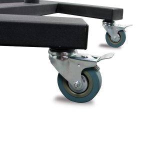 Inklusive abriebfester 3-Zoll-Rollen mit Feststell-/Bremse und alternativen Nivellierfüßen
