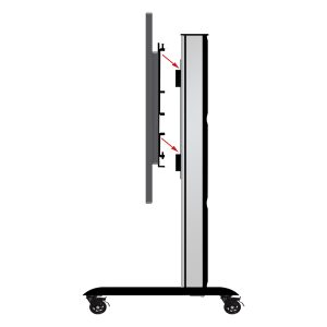 Entwickelt, um Microsofts 84″ Surface Hub Display zu montieren. Das universelle Design ist ideal für andere Standard- oder interaktive Bildschirme ab 72″. Die Interface-Arme enthalten Nivellierschrauben zur Höhenanpassung des Bildschirms. Sicherheitsschrauben helfen, das unbefugte Entfernen von Bildschirmen zu verhindern. Enthält nicht-abfärbende 4″ Arretierrollen mit Bremse und alternative Nivellierfüße. TUV-zertifiziert. Integriertes Kabelmanagement. Regale und andere Zubehörteile können direkt an einer Säule oder an den Schienen mithilfe des BT8390-SA (separat erhältlich) angebracht werden.