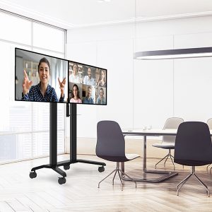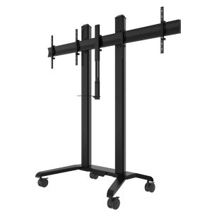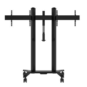 Der BT8516 ist eine hochwertige Montageslösung, die entwickelt wurde, um zwei Bildschirme nebeneinander für Videokonferenzanwendungen zu montieren. Der Wagen wird mit einem verstellbaren VC-Regal geliefert, das es ermöglicht, Kameras über oder unter dem Bildschirm anzubringen. Integrierte Kabelmanagementsysteme verstecken Kabel für eine elegante Installation in jeder Umgebung, und nicht markierende Lenkrollen mit Bremsen ermöglichen es, den Wagen leicht und sicher zu verlegen, ohne die Bodenoberflächen zu markieren. Schraubfüße zum Nivellieren für freistehende Anwendungen sind separat erhältlich.
