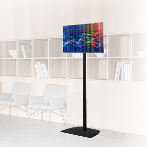 BT8570 ist ein eleganter Präsentationsständer, der für die Verwendung mit einem kleinen Flachbildschirm konzipiert ist. Die Basis verfügt über abriebfeste Gummifüße, Haltegriffe für eine einfache Handhabung und eine Abdeckplatte zum Verstecken der Griffe. Geeignet für Bildschirme mit VESA 50-, 75- oder 100-Befestigungen, kann der Bildschirm problemlos in jeder Höhe an der 1,6 Meter langen Stange montiert werden. Mithilfe eines Ø50-mm-Kragens können auch Zubehörteile wie Regale hinzugefügt werden.