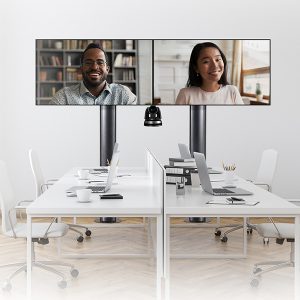 Entwickelt, um zwei Bildschirme nahe an der Wand zu montieren, während alle Kabel ordentlich verborgen bleiben. Universelles Design mit einer hochwertigen, erstklassigen Ästhetik. Verstellbares VC-Regal kann über oder unter den Bildschirmen angebracht werden. VC-Regal passt auf die meisten Kameras mit 1/4″-Gewinde und 100 x 100 mm Befestigungspunkten. Die Arme verfügen über Ausgleichsschrauben zur Anpassung der Bildschirmhöhe. Kleiner Platzbedarf für eine unauffällige Installation in engen Bereichen. Integriertes Kabelmanagement. Sicherheitsschrauben helfen, die unbefugte Entfernung der Bildschirme zu verhindern. Lässt sich einfach mit einem nach unten klappbaren Medienablagefach (separat erhältlich) ergänzen. Einfache ‚Aufhängen‘-Bildschirminstallation.
