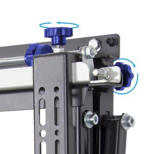 BT9926 ist eine Dual-Rail-Wandmontagelösung mit ausklappbarem Design, die für besonders große 21:9 Ultra-Weitbildanzeigen entwickelt wurde. Der Bildschirm ist sicher über zwei horizontale Schienen montiert, was eine unkomplizierte Hakenmontage ermöglicht. Die Halterung bietet eine einfach zu bedienende Druck-zu-Lösen-Funktion, die einen schnellen Zugriff während der Wartung ermöglicht. Darüber hinaus ermöglichen Mikroverstellräder eine präzise Ausrichtung des Bildschirms, was ideal für eingebaute Installationen ist.
