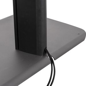 Universelles Design geeignet für die Montage von zwei Bildschirmen nebeneinander. Hochwertige ÄsthetikInklusive VC-Regal, das über oder unter den Bildschirmen montiert werden kann. Stabile Konstruktion aus schwerem Stahl sorgt für Stabilität, wodurch das Verankern am Boden unnötig wird. Kann auch am Boden verankert werden, um unbefugte Umplatzierung des Displays zu verhindern. Geliefert mit verstellbaren Füßen, um unebene Bodenflächen auszugleichen. Die Arme verfügen über Leveling-Schrauben zur Anpassung der Bildschirmhöhe. Kompatible Zubehörteile wie Regale können direkt an der Säule befestigt werden. Integrierte Kabelverwaltung für eine ordentliche und aufgeräumte Installation. Sicherheits-Schrauben helfen, unbefugtes Entfernen des Bildschirms zu verhindern. Einfache ‚Aufhänge‘-Installation des Bildschirms.
