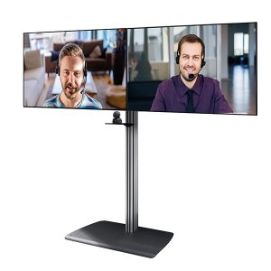 Die BTF845 ist eine hochwertige Montageslösung, die dafür entwickelt wurde, zwei Bildschirme nebeneinander für Videokonferenzanwendungen zu montieren. Eine schwere Stahlbasis beseitigt die Notwendigkeit, sie am Boden zu befestigen, und verstellbare Levelfüße sind enthalten, um unebene Oberflächen auszugleichen. Die hochwertige Ästhetik mit einer eloxierten Aluminiumoberfläche und integriertem Kabelmanagement sorgt dafür, dass die fertigen Installationen ordentlich und sauber sind, was die BTF845 ideal für den Einsatz in Unternehmensumgebungen macht.