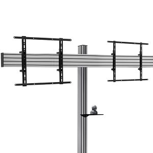 Universelles Design geeignet für die Montage von zwei Bildschirmen nebeneinander. Hochwertige ÄsthetikInklusive VC-Regal, das über oder unter den Bildschirmen montiert werden kann. Stabile Konstruktion aus schwerem Stahl sorgt für Stabilität, wodurch das Verankern am Boden unnötig wird. Kann auch am Boden verankert werden, um unbefugte Umplatzierung des Displays zu verhindern. Geliefert mit verstellbaren Füßen, um unebene Bodenflächen auszugleichen. Die Arme verfügen über Leveling-Schrauben zur Anpassung der Bildschirmhöhe. Kompatible Zubehörteile wie Regale können direkt an der Säule befestigt werden. Integrierte Kabelverwaltung für eine ordentliche und aufgeräumte Installation. Sicherheits-Schrauben helfen, unbefugtes Entfernen des Bildschirms zu verhindern. Einfache ‚Aufhänge‘-Installation des Bildschirms.