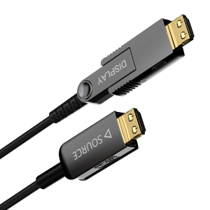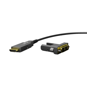 Das CLV215A ist ein aktives optisches HDMI 2.0-Kabel für Festinstallationen. Es kann Auflösungen bis zu Ultra HD 4K 2160p (4096 x 2160) bei 60 Hz mit einer Bandbreite von 18 Gbit/s über die OM3-Glasfasertechnologie übertragen, wodurch die Möglichkeit elektronischer Interferenzen ausgeschlossen wird. Der feste und abnehmbare HDMI-Anschluss ermöglicht es Ihnen, diesen Anschluss einfach zu lösen und wieder anzuschließen. Auf diese Weise kann das Kabel durch Löcher und gerade Rohre mit einem Durchmesser von nur 25 mm geführt werden.