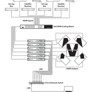 Ermöglicht die Darstellung eines HDMI Signals 1080p inkl. Rotation auf einen Wiedergabegerät. In Kombination mit einen HDMI Verteiler/ HDMI Kreuzschiene kann eine Videowandapplikation realisiert werden. Die Latenz zwischen den Controllern beträgt max. 2 frames.