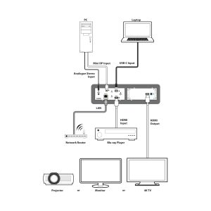 Signalmanagementfunktionen wie die automatische Quellenumschaltung basierend auf der Eingangssignalerkennung ermöglichen eine komfortable freihändige Bedienung. Zusätzliche Funktionen wie erweitertes EDID-Management, HDCP-Management und grundlegende Signalereignisautomatisierung (die automatisch CEC-Befehle an das angeschlossene Display senden kann) sind ebenfalls verfügbar.