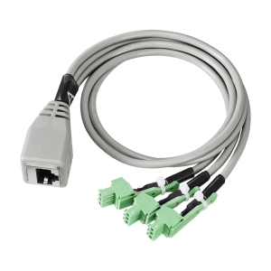Kabel im Lieferumfang: 2x RJ45-Breakout-Kabel für den Anschluss an einen Mixer; 2 separate Standard-RJ45-Kabel für die Übertragung von Audio- und Steuersignalen erforderlich