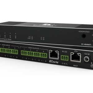 Hochleistungs–Standardmischer — Professioneller Mischer für das Mischen von jedem Eingang an jeden Ausgang, einschließlich automatischer Analog–zu–digital–Wandlung, einstellbare Eingangs–, Cross–Point — und Ausgangs–Lautstärkeregelung. FC–404NETxl ist ein Standardmischer, der mit jedem auf dem Markt erhältlichen AES67–konformen, Dante–fähigen Gerät verbunden werden kann.