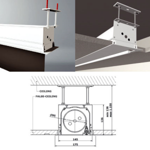 Dank des exklusiven Easy-Cut-System ist die Leinwand extrem einfach zu installieren. Eine Schablonenform gibt die richtigen Abmessungen an, um den Deckenausschnitt richtig auszuschneiden.