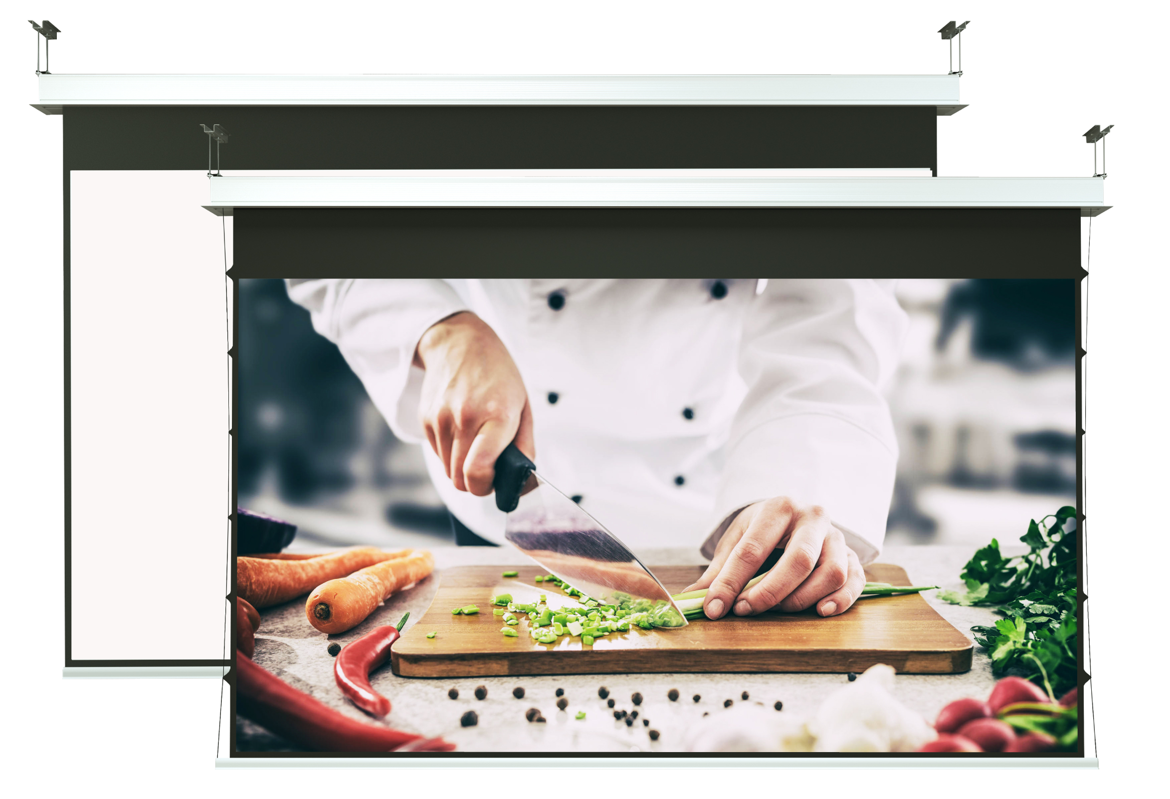 Einbau Leinwand 620 x 388cm, White Ice, ohne Rand, 35cm Top-Drop – SPERRGUT