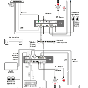 Dieses System verfügt außerdem über bidirektionalen IR-Passthrough, analogen Line-Pegel-Ein-/Ausgang und einen Mikrofoneingang und bietet dem Nutzer vielfältige Audiooptionen. Dank der USB-Funktion fungiert das System als USB-Hub und kann somit als KVM-Switch genutzt werden. Durch das Hinzufügen zusätzlicher Geräte lässt sich das System kaskadieren und so die Übertragungsdistanz ohne Signalverlust oder spürbare Verzögerungen erweitern.