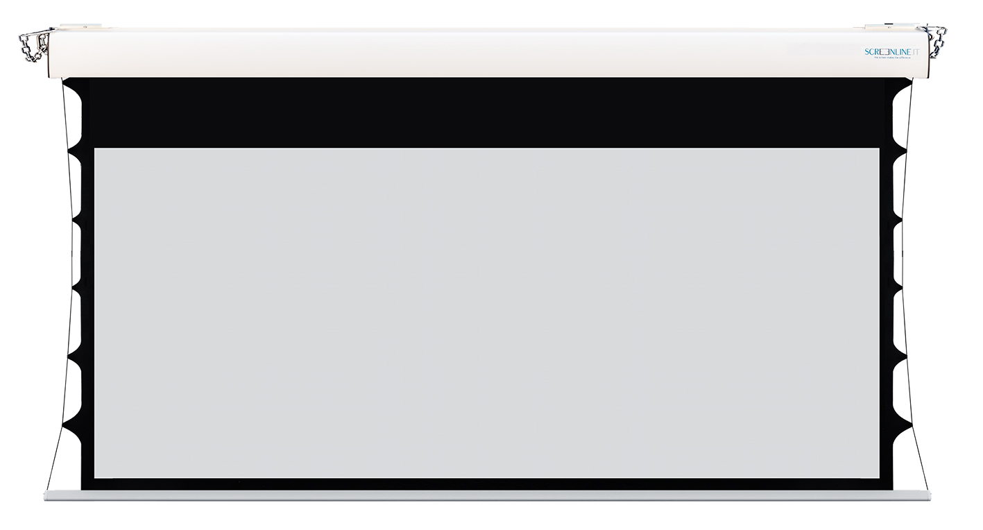 Die seitliche Spannung des Projektionsgewebes sorgt für eine perfekte Ebenheit der Oberfläche und der Ränder auch nach längerem Gebrauch. Die Stärke der Aluminiumstruktur sowie die Vielfalt der verfügbaren Stoffe bleiben die gleichen wie bei Standard-Lodo, ​​auch in kundenspezifischen Versionen.