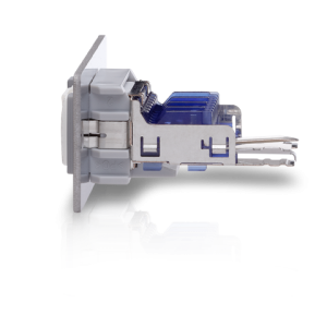 CAT-6-Multimedia-Einsatz mit LSA-Technik. Durch eine werkzeugfreie Klemmschneidtechnik auf der Rückseite kann ein Netzwerkkabel unkompliziert und zeitsparend montiert werden. Eine eindeutige Farbmarkierung verhindert Verwechslungen. Der Übergang zum Multimedia-Anschluss wird abschließend durch eine zusätzliche Haube ideal vor Störeinflüssen geschirmt. Frontseitig verfügt der Multimedia-Einsatz über eine Standard-RJ45-Buchse zur Verbindung mit einem herkömmlichen Patchkabel. Der Einsatz ist mit 24 Karat vergoldeten Kontakten. In Kombination mit dem Montagerahmen können zwei beliebige Multimedia-Einsätze (alternativ ein Einsatz kombiniert mit einer Blindblende) pro Rahmen mit Innenmaß 50 x 50 mm montiert werden.
