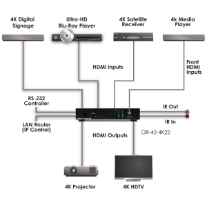 Schaltet 4 HDMI2.0 mit HDCP2.2 mit max. 4K/ UHD@60Hz YUV4:4:4