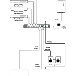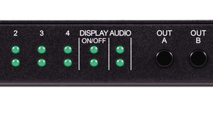 Schaltet 4 HDMI2.0 mit HDCP2.2 mit einer maximalen Auflösung von 4K/ UHD@60Hz und YUV 4:4:4 auf bis zu 2 Wiedergabegeräte. Der analoge Audioausgang ermöglicht es, das Audiosignal eines ausgewählten HDMI-Eingang zu deembedden.