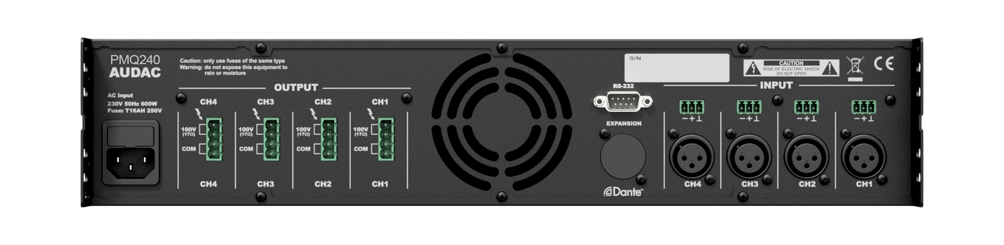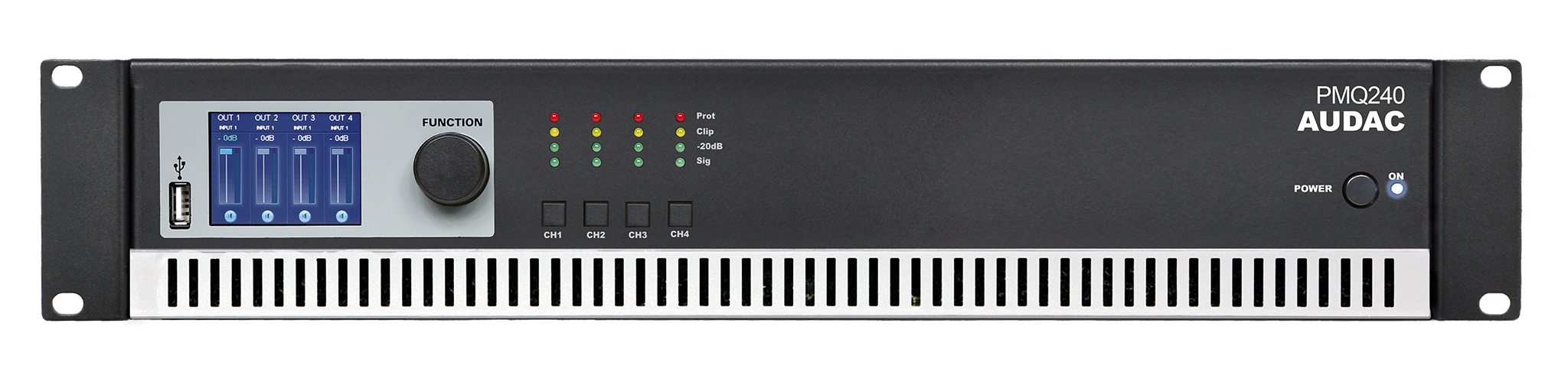 Der PMQ240 ist ein vierkanaliger Class-D 100V-Leistungsverstärker mit einer Ausgangsleistung von 240 Watt für jeden Kanal. Die WaveDynamics ™ DSP-Prozessor-Kombination mit dem 2,5 „-LCD-Display bietet eine unübertroffene Benutzererfahrung mit intuitiver Funktionsübersicht zur einfachen Konfiguration.