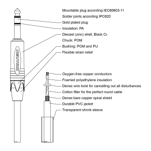 Das PRA723 ist ein hochwertiges Mikrofonkabel, das mit dem flexiblen PMC224 Kabel konstruiert ist und mit Neutrik NC3FXX-BAG und NeutrikNP3X-B Steckverbindern ausgestattet ist. Die 24 AWG (0,22 mm²) dünnen und dicht verseilten blanken Kupferleiter sind von einer hohen Spiralabschirmung umgeben. In Kombination mit dem dicken und weichen PVC-Außenmantel bietet dies ein flexibles, aber festes Gefühl. Das hochreine Kupfer, die hohe Abschirmung und die niedrige Kapazität garantieren eine optimale Signalübertragung. Die beigefügte Schrumpfmuffe ermöglicht eine eindeutige Kennzeichnung.