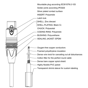 Das PRA735 ist ein hochwertiges Mikrofonkabel, das mit dem ultra-flexiblen PMC224-Kabel gebaut ist und mit Neutrik NC3FXX-BAG und 2x Neutrik NC3MXX-BAG-Steckverbindern bestückt ist. Die 24 AWG (0,22 mm²) dünnen und dicht verseilten blanken Kupferleiter sind von einer hohen Spiralabschirmung umgeben. In Kombination mit dem dicken und weichen PVC-Außenmantel bietet dies ein flexibles, aber stabiles Gefühl. Das hochreine Kupfer, die hohe Abschirmung und die niedrige Kapazität garantieren eine optimale Signalübertragung. Die beigefügte Schrumpfhülse ermöglicht eine kundenspezifische Beschriftung zur einfachen Identifizierung.