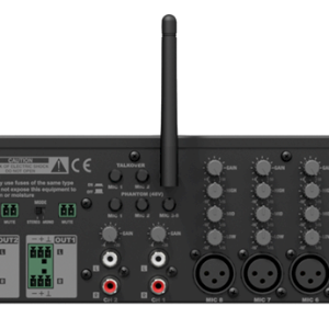 Die Kanäle eins bis acht sind symmetrische Eingänge, die den Anschluss von Mikrofonen oder Line-Level-Audioquellen mit der Möglichkeit ermöglichen, 48V-Phantomspeisung für jeden Eingang zu aktivieren. Sie verfügen über 3-Band-Klangregelung und Talk-Over für Prioritätsansagen. Die anderen beiden Eingänge (9 und 10) sind unsymmetrische Stereo-Line-Eingänge, die den Anschluss von Audio-Quellen aller Art ermöglichen.