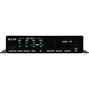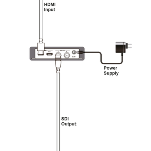 Der Converter wandelt ein HDMI2.0 Signal mit ein embedded Audio 8 Kanal PCM 48 kHz oder 2 Kanal Audio Signal, auf ein 12G-SDI (60m), 6G-SDI (80m), 3G-SDI (100m), HD-SDI (200m) oder SD-SDI (300m) Signal und gibt dieses auf einem Ausgang und einem Loop-Ausgang aus.
