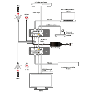 Das PUV-1510-KIT Sender- und Empfänger-Kit ermöglicht die Übertragung von Videoauflösungen bis zu 4K UHD sowie HD-Audio, 2-Wege-IR, RS-232, PoH (Power over HDBaseT) und LAN-Signalen bis zu 100 m. Diese Lösung bietet erweitertes Signalmanagement und gewährleistet zuverlässige Ergebnisse auch in anspruchsvollsten Installationsumgebungen. Audio, Video, Steuerung und Strom werden gleichzeitig über ein einziges CAT6a/7-Kabel bis zu 100 m übertragen.