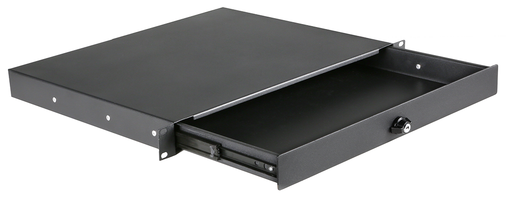 Der RD110L ist eine solide 19″ Rackschublade aus 1,2 mm starkem kaltgewalztem Stahl, die in einer schwarzen (RAL9004) Pulverbeschichtung fertiggestellt ist. Dieses fein strukturierte Finish sorgt für eine verbesserte Kratzfestigkeit. Diese Rack-Schubladen können für die Lagerung von jeglichen Sachen verwendet werden, die sich auf die Rack-montierten Geräte wie Kabel, Mikrofone, Funksender, Headsets, Fernbedienungen, Bedienungsanleitungen usw. beziehen die Schublade.