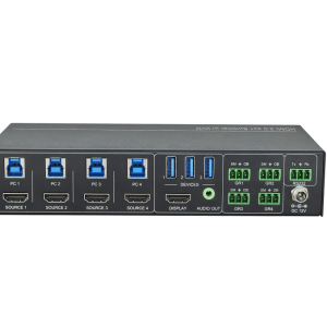 Schaltet 4 HDMI2.0 Signale mit 18 Gbps mit USB3.0 auf 1 Wiedergabegerät mit der fast switching Technologie. Via Audio Deembedding steht analog Audio am Ausgang zur Verfügung. Kann via Autoswitching, Fronttasten, RS232 oder GPIO gesteuert werden. Unterstützt UHD/ 4K und HDR.