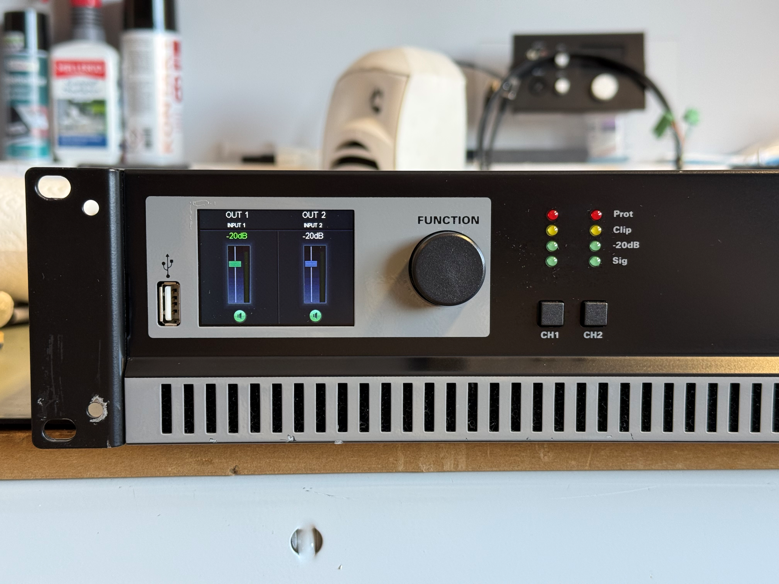 Über die integrierten Tief-, Hoch- und Bandpassfilter sowie den 7-Band-EQ mit jeweils variabler Frequenz und Q-Faktor lassen sich die Klangeigenschaften optimieren. Außerdem stehen noch ein Delay und ein dynamischer Bass-Boost zur Verfügung. Alle Einstellungen lassen sich über die Bedienelemente auf der Vorderseite des Verstärkers anpassen, wobei der Zugriff per Passwort bzw. USB-Key in zwei Sicherheitsstufen (User & Administrator) geregelt wird. Zum Schutz der angeschlossenen Lautsprecher ist ein Limiter integriert, der die Ausgangsleistung begrenzt, wobei die Maximalleistung (in Watt) für jeden Kanal separat konfiguriert werden kann.