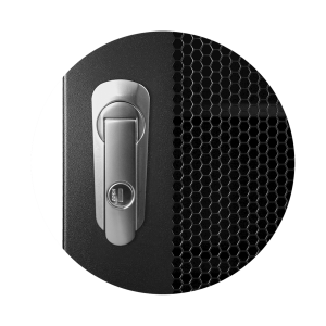 Der SPR8842GG wird mit 2 perforierten Stahlgrilltüren (vorne und hinten) geliefert. Die Maschenperforation mit sechseckigem Muster sorgt für einen optimalen Luftstrom durch den Schrank. Der Schwenkgriff mit Zylinderschloss verriegelt das Gerät sicher im Inneren. Die Breite von 800 mm bietet zusätzlichen Platz für die Installation von Zubehör und Kabelmanagementsystemen und garantiert gleichzeitig einen optimalen Komfort für die Installation und Wartung der Geräte.