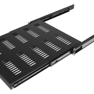 Ein 19-Zoll-Schiebefach aus Stahl mit einer Dicke von 1,2 mm und einer schwarzen Pulverbeschichtung. Das Regal kann zur Aufbewahrung von Geräten verwendet werden, die keine standardmäßige 19-Zoll-Montagevorrichtung enthalten, oder von Geräten, auf die häufig zugegriffen werden muss. Die Schiebeböden der SS1xx-Serie sind mit verbesserten Schienen für eine noch größere Verlängerung ausgestattet. Diese glatten Schiebeböden bieten einfachen Zugang und sichere Aufbewahrung für Ihre kundenspezifischen Geräte.