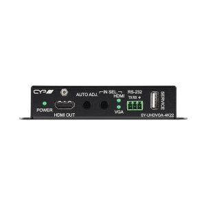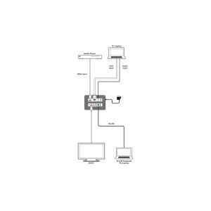 Dieses Gerät eignet sich ideal für die Integration bisher inkompatibler Quellen und Displays oder als flexibler Eingangspunkt mit automatischer Erkennung für kleine Konferenzräume oder Besprechungsräume. Dieses Gerät kann über Tasten auf der Vorderseite und RS-232 gesteuert werden.